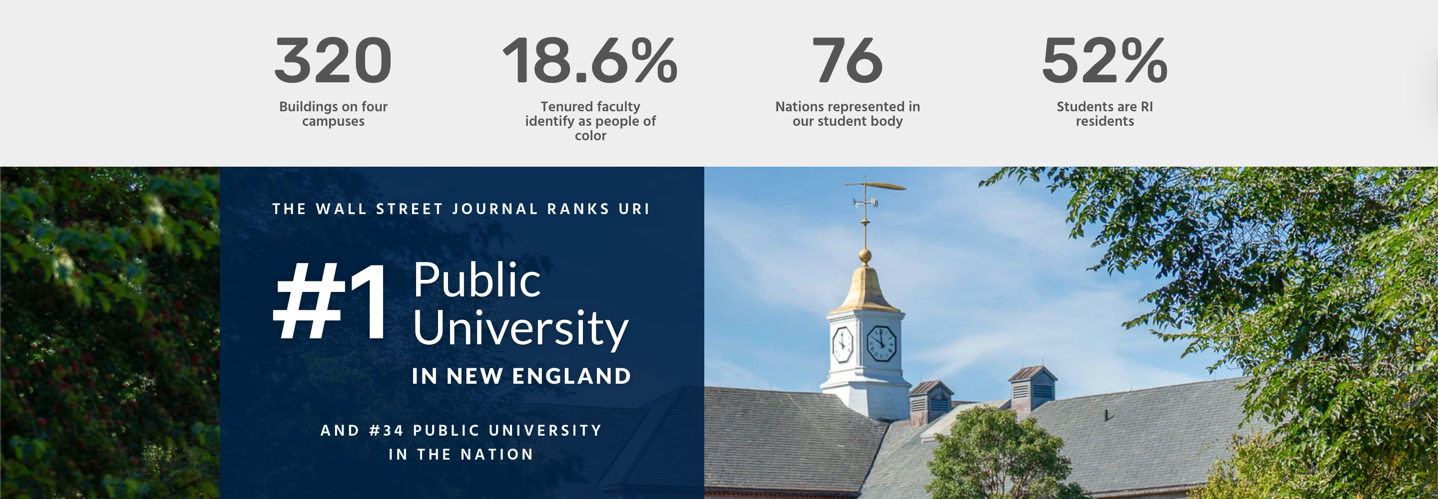 The University of Rhode Island is a thriving, welcoming community that attracts students, faculty, and staff from around the world. At URI, we maintain a strategic vision that is propelling us forward and elevating our standing as a leading global research institution that drives positive social, economic, cultural, and environmental change.